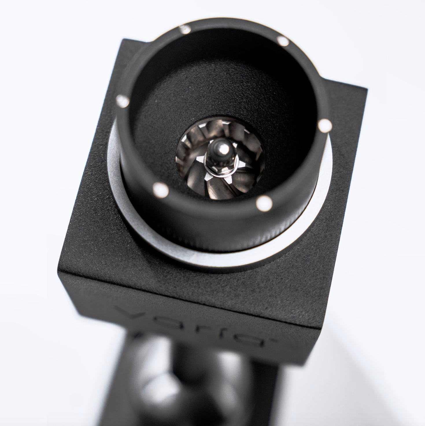 The Varia VS3 (Varia Stepless 38mm) Electric Grinder utilises a sloped geometry with a 76.5° acute angle. Using this geometry also allows for ideal zero retention conditions as well as a better workflow in relation to adding coffee to the hopper, making grind adjustments, and 180° access to the dosing cup.